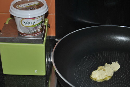 Coloque o preparado Vaqueiro para Bifes numa frigideira.