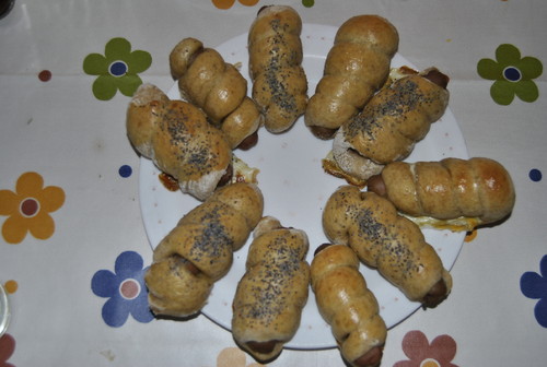 Pãezinhos com salsichas
