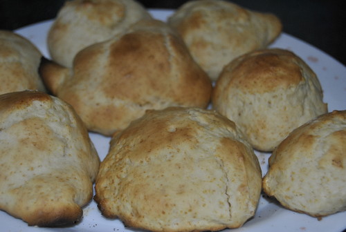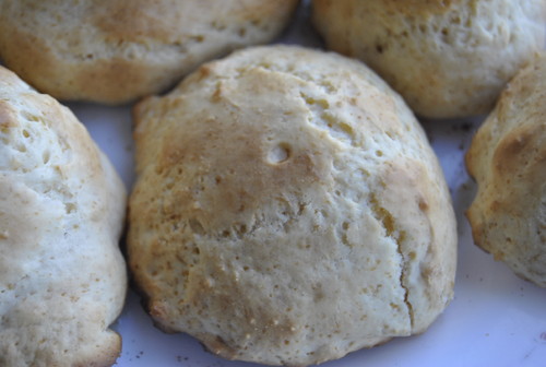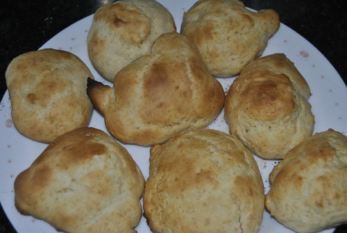 Polvilhe um tabuleiro de ir ao forno com bastante farinha. Coloque colheradas de massa com espaço entre elas pois vão crescer. Leve a frono pré-aquecido a 200º, durante cerca de 10 minutos.