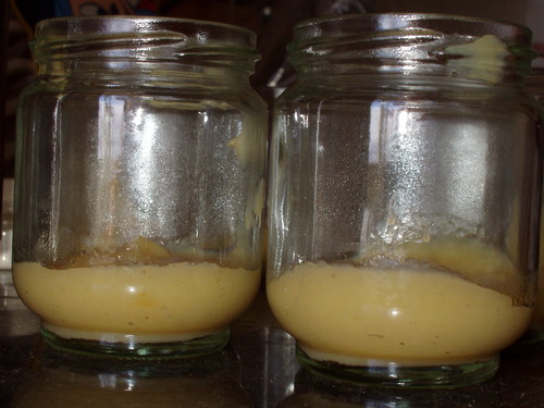 Quando o leite chegar aos 40º, adicione a papa do iogurte, e misture muito bem. Coloque dentro dos potes com cuidado para não misturar com o doce da banana e leve os potes à iogurteira durante 10 a 12 horas. Coloque-os no frigorifico durante 4 horas antes de consumir.