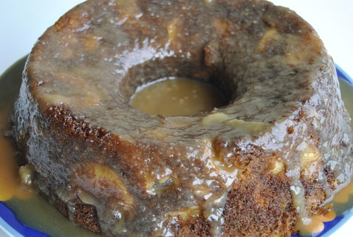 Este bolo fabuloso saiu do site Baking Bites que é fenomenal! Um simples mas delicioso bolo de maçã. Podem faze-lo simples como na receita original, ou enriquece-lo com o molho toffee que foi o que fiz.