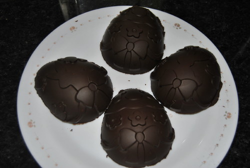 Como sou fã de chocolate e acho muito interessante esta tradição de oferecer ovos de Páscoa e considerando que os ovos de chocolate que se vendem contém um chocolate muito mau e outros melhores mas todos com muitos conservantes e emulsionantes, tudo ingredientes pouco saudáveis.