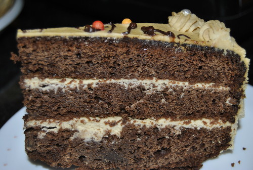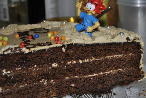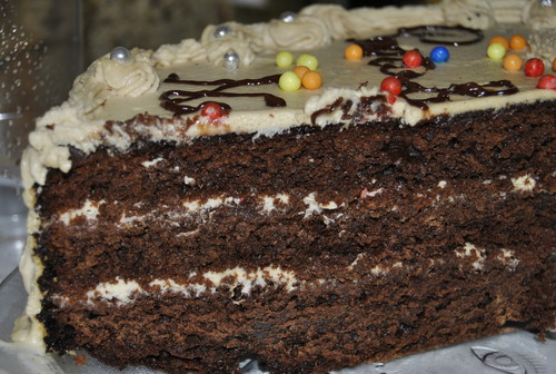 O bolo ficou digno de um aniversário, estava delicioso, ficou enorme, como se pode ver, e fez um sucesso!