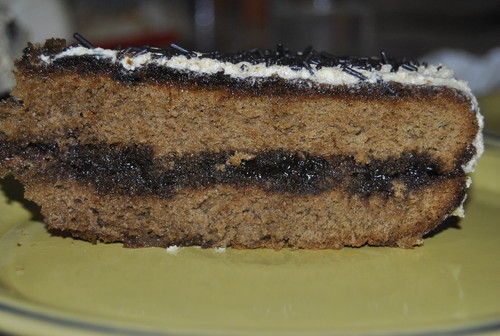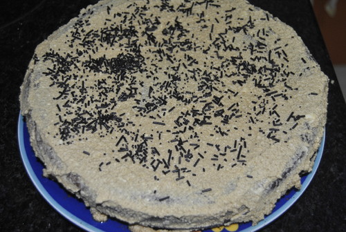 Para o creme, deite o açúcar e a manteiga à temperatura ambiente na cuba da batedeira e bata durante cerca de 3 minutos. Adicione o café e o ovo e bata mais dois minutos. Cubra o bolo.